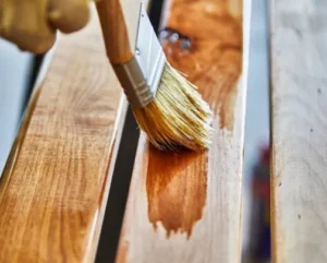 Clean the wood surface thoroughly to remove dust, dirt, and grease. Lightly sand any rough spots or imperfections. -